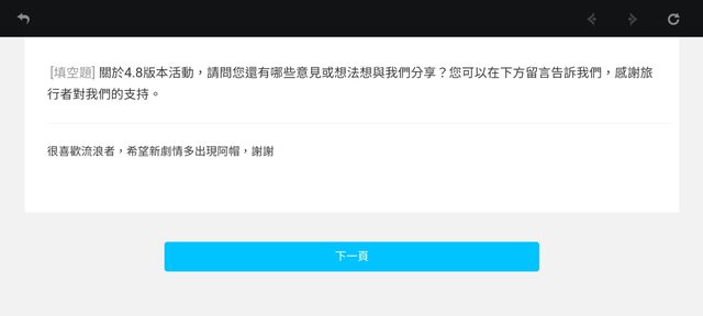 → kirihitoha: 續的問卷內容(同個帳號問卷重複刷新問題都一樣), 08/10 11:28