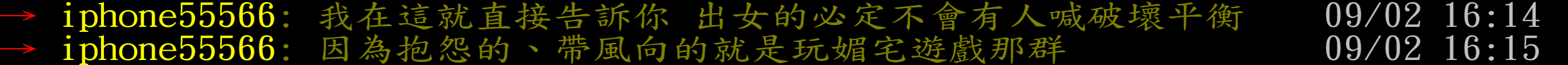 → iphone55566: 去算一下男女比 09/02 20:17