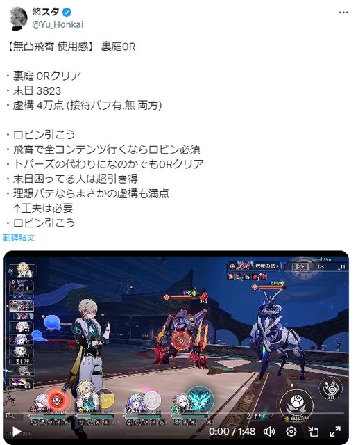 → O300: 我現在隊伍都可以不上生存換個知更鳥或同諧 因為黃泉流螢都 09/10 18:16