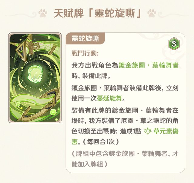 可以幫隊友裝備靈蛇的話 就表示能輕易打出草傷雜技來達成反應 深淵詠者·紫電