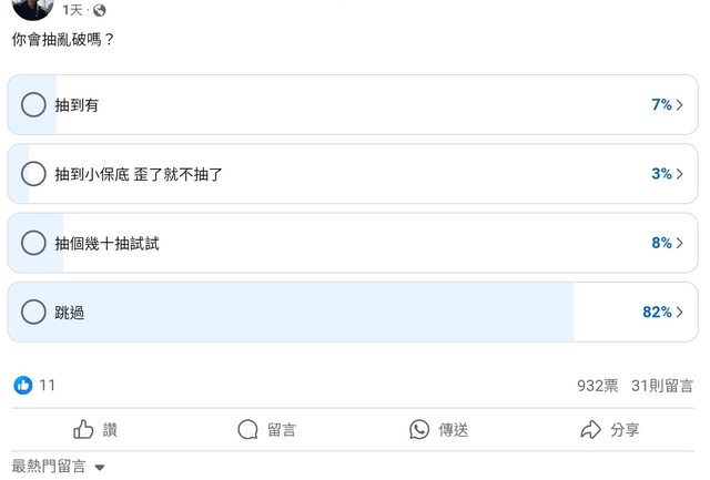 → leo255112: 我還是丟了十抽,沒中,那就算了 10/25 11:04