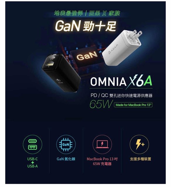 【亞果元素】OMNIA X6A PD/QC 65W 氮化鎵 GaN 極小型雙孔快速電源供應器