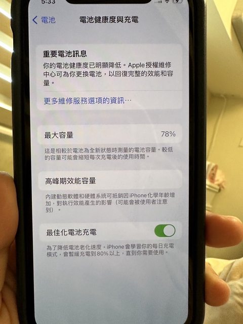 物品狀況:外觀無明顯傷痕,電池健康度78。老婆的手機,第一張保護貼還沒換過。附犀牛盾手機殼。