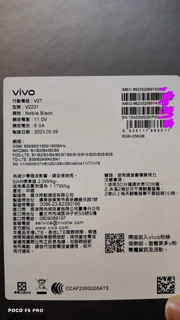 標題[賣/台中彰化/皆可] vivo v27 8G 256G 石墨黑