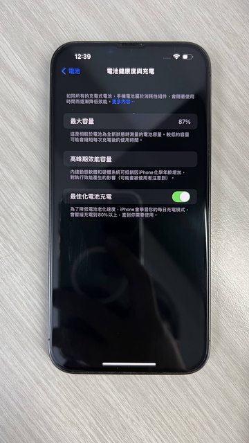 顯示正常無損傷、電池健康度87%