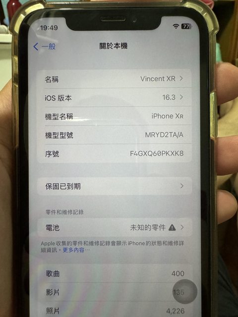 物品狀況:詳如圖片,去年有更換電池,無法顯示健康度