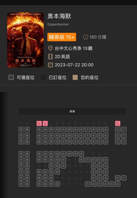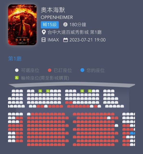今天又心血來潮想訂票(我知道我太晚訂了) 果難諾蘭不虧是諾蘭 imax熱門時段好位置幾乎都沒了 https://i.imgur.com/QFDjDK1.jpg