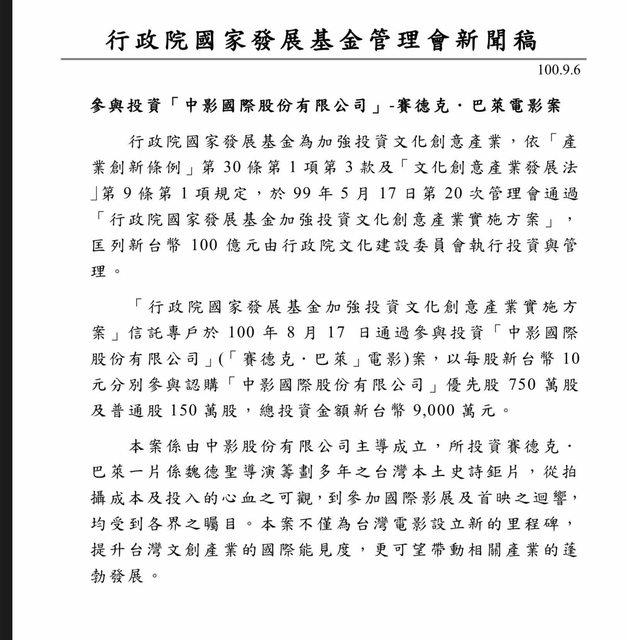 : 國際已收回國發基金之甲特與果子文創的乙特