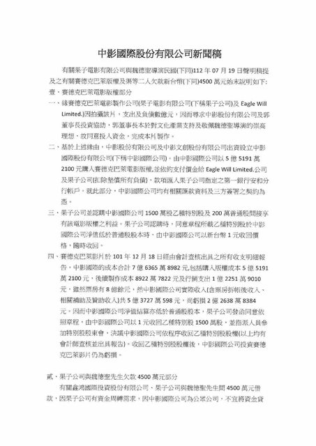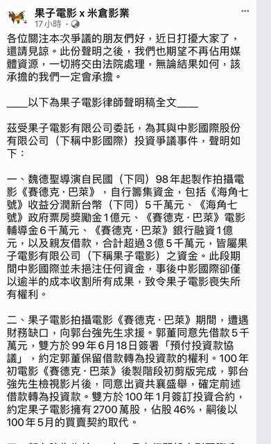 標題Re: [新聞] 魏德聖再度反擊!發聲明痛批中影失信