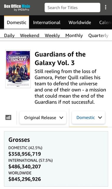 (涉及重大劇透) https://youtu.be/ T33-wHJKkWM 怕縮圖雷到還沒看的人所以網址先切一半。 這段感覺有可能是原本的最後一幕,如果是的話還蠻慶幸後來改成現在的樣子的,相關設 定在岡恩推特上也有提到,但沒想到是有拍出來的。 知道有這個設定以後,戲院二刷時有特別注意幾個畫面,雖然鏡頭沒有很清楚帶到但應該 也是偷偷暗示了。 不過說到額外收錄,很希望這次D+上架能比照近年的漫威電影放導演講評版本,雖然之前 雷神4跟奇異2表現不如預期但還是會好奇一些幕後花絮,倒是量子狂熱的就真的不太會想 點開。 更早的復3復4後來也都有重看講評版,所以異攻隊的第一集和第二集沒有收錄就覺得有點 可惜,這兩部都是只收在blu-ray,但過去出碟的得利影視前年開始就不再代理迪士尼跟 福斯的電影了QQ -- 截至7月底本片累積票房為美國3億5895萬、國際4億8634萬,計8億4529萬美金https://i.imgur.com/g8ZeJHJ.jpg