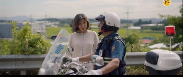 警察一開始幫助婦人載她離開,沒想到警察去上廁所的時候,被婦人攻擊,進而咬警察脖