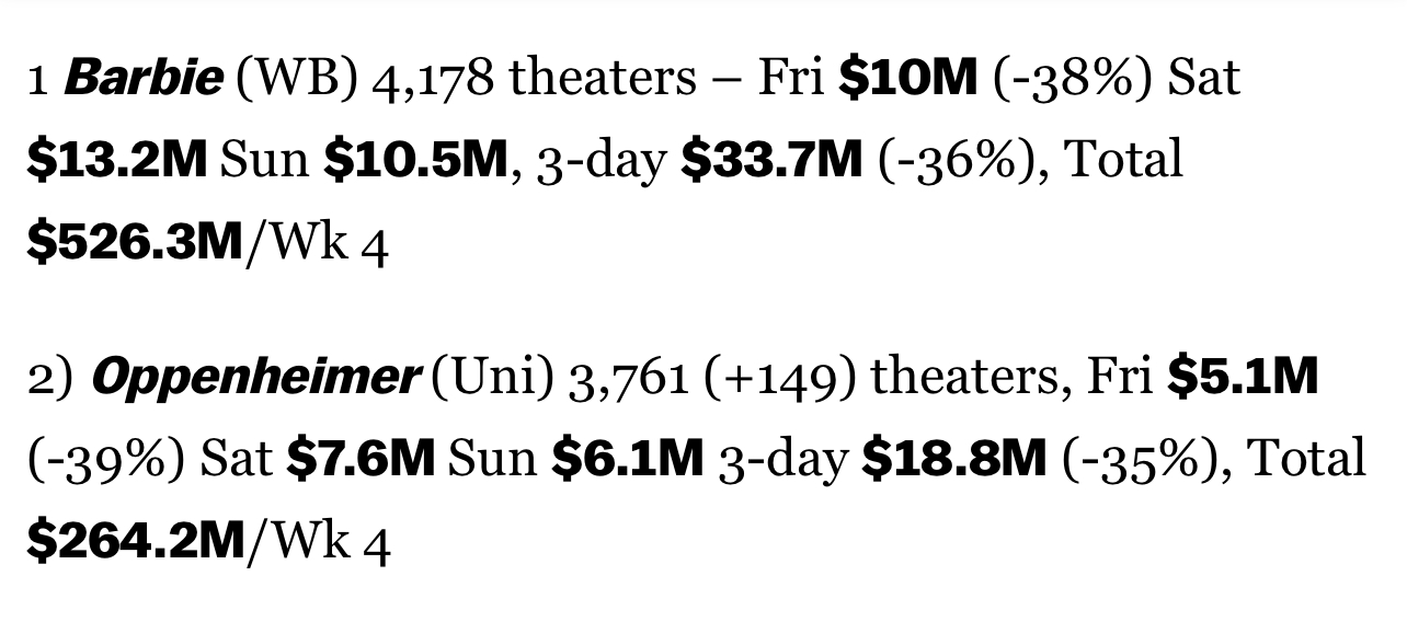 → chyx741021 : 芭比和歐本海默連跌幅都一模一樣,一直維持在剛剛 08/13 23:39