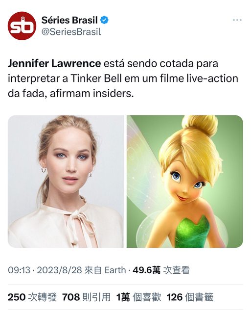 知情人士稱,珍妮佛 勞倫斯有望在一部關於仙女的真人電影中扮演小叮噹https://i.imgur.com/dUuMxsQ.jpg