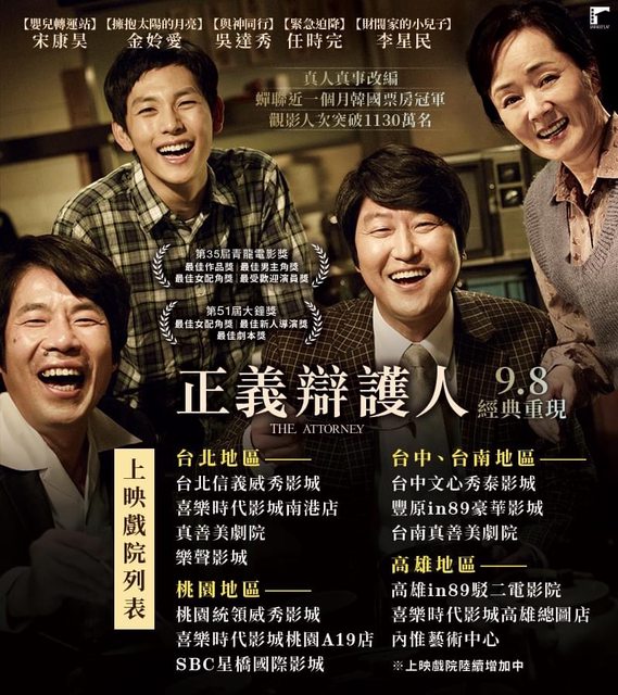 標題[情報] 宋康昊《正義辯護人》上映戲院列表