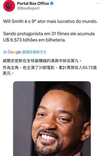 威爾史密斯在全球最賺錢的演員中排名第九。