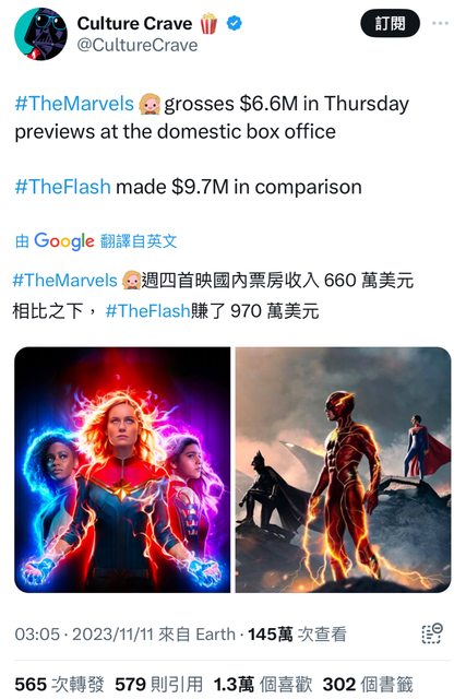 推 xBox1Pro : 閃電俠是「負面的聲量也是聲量」,驚奇2唯一的聲量 11/11 17:12