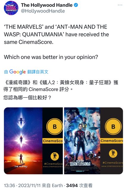 推 holyseraph : 驚奇隊長2的北美戲院觀眾出口民調只有B...11/11 14:02