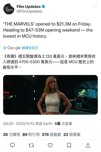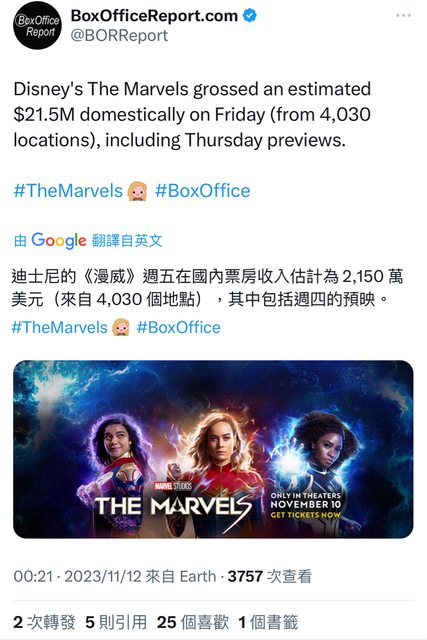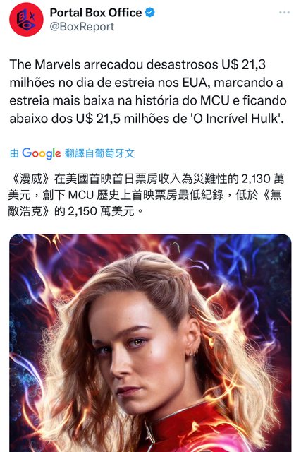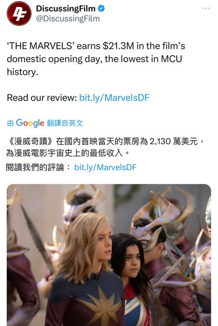 推 hatland86 : 到底票房能不能破億呢驚奇 11/12 07:30