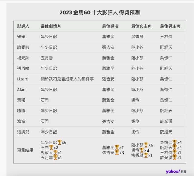 2023金馬60預測 | 十大影評人:影后中港台女演員各有擁護者!
