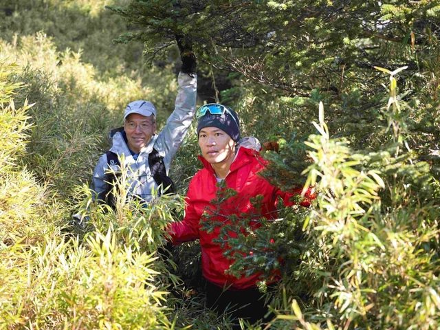走過程,兩人場勘訓練時,差點因為摩即山箭竹林植被茂盛、阻擋視線而迷路。(活水文