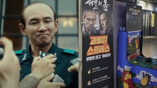 首爾的電影院搬來打地鼠機,讓看完《12.12:首爾之春》太入戲的影迷紓壓。翻攝論壇