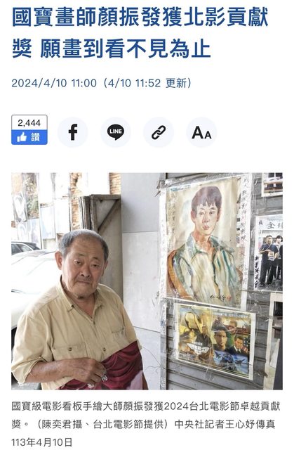 標題[新聞] 國寶畫師顏振發 獲北影貢獻獎