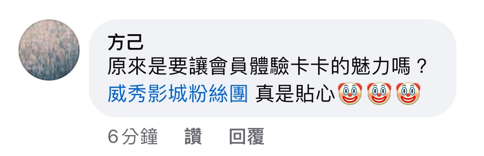 推 poopooShaw : 威秀server又掛了,現在粉絲團貼文下的留言被罵爆 09/17 12:57