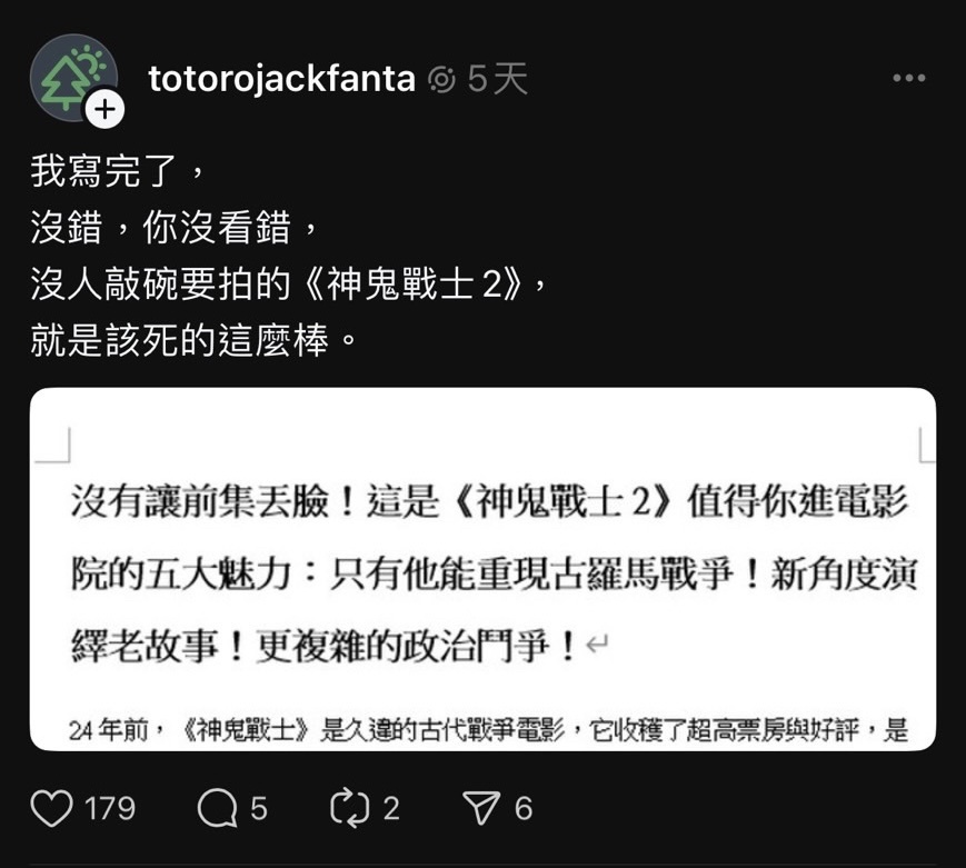 推 oasis66666 : 對著戰俘奴隸角鬥士喊為了羅馬精神、羅馬夢、光復 11/17 20:54