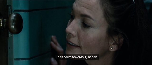 當然這是不可承受之重、孩子聽了全沒被說服,但不久兩個大人笨重拳腳令他邊看邊笑轉移了焦點、再看「超人降落地球」馬上裸男救火大賣肌肉 XD 然後西洋繪畫常見的「十字殉道」本片也玩他也是笑笑... 只是殉道殉到睜開眼睛卻是「鯨魚母子」這就是「親職電影」意象提點:(2) 這是小克拉克初見複雜世面的「小學課堂」戲,小小腦袋瞬間過載無法負荷而焦慮狂奔!孩子回想他一年級腦筋簡單 XD 天真玩樂才沒這焦慮,但中高年級漸漸人際課業師生壓力才藝防疫紛至沓來時、的確也曾覺得「人生怎麼這麼複雜」?我們曾教的「專心致志」在本片則是「游向那小島」。