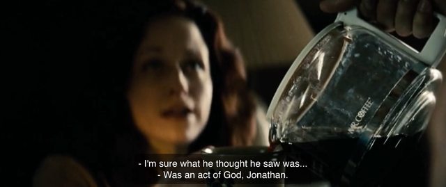 今天板上關於這位大導網路言論的文章中,我最欣賞 a110016版友的推文:「遏止流言蜚語的上上之策就是讓作品說話」。看看這部《超人:鋼鐵英雄》的酒吧男孩被潑啤酒滿腔怒火又怎麼處理?也是做個「卡車巨木」裝置藝術一抒怨氣 (!)就飄然遠去。這一遠行倒將遇上已在職場打滾多年的另一「人上之人」令他欣慰「德不孤必有鄰」:(6) 軍方聞之色變老闆也很頭痛 XD 的記者 Lois Lane,才剛下機早已料到要吃官場下馬威,直接破梗 "if we're done measuring dicks"就別廢話來談正事吧。的確這世界千瘡百孔好多事待做,為何總花時間在庸碌眉角卻把正事擱一旁?