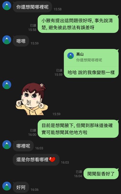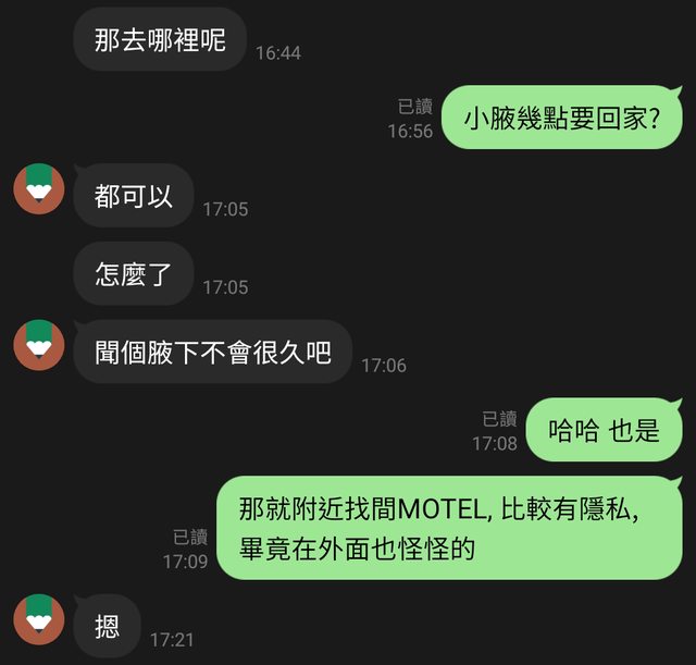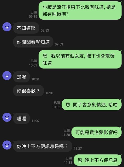 確認LINE上就是剛跟我聊天的小腋後, 才敢繼續聊天室的話題