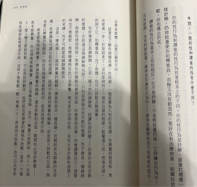 一加一的能量大於二,雖然有性器交合的行為,但男生不能射精,兩個人的高潮能夠持續