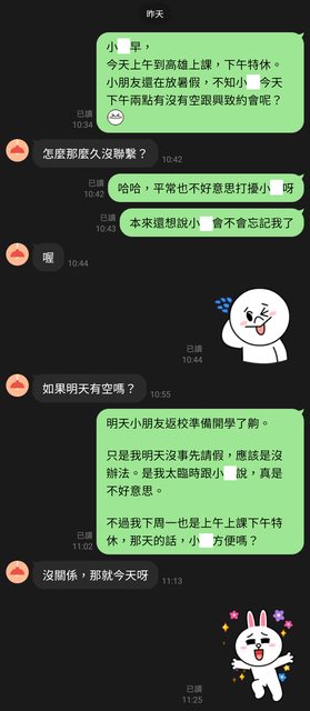 哈哈,我完全沒想到小腋會這樣回,實在有點無力招架,深怕回得不好錯失機會,不過我跟小腋對話都蠻直來直往,於是我也簡短地回了小腋,幾句簡短的往來後,敲定了下午2點的約會。