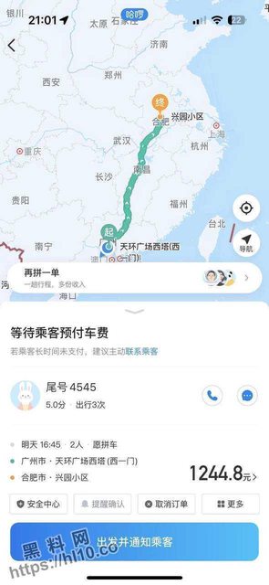 對話顯示這名正妹打算從廣州市到合肥市,算是長途路程,因此順風車資需要1244.8元人