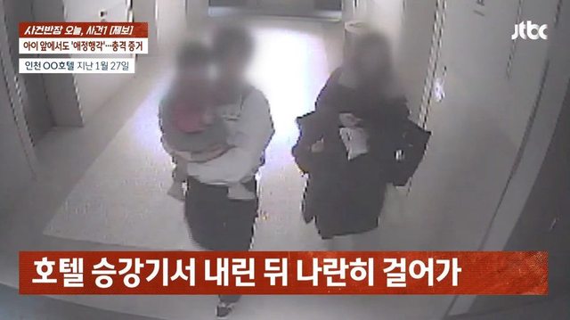▲女教師、鮮肉男學生抱著2歲幼童開房間。(圖/翻攝自YouTube/JTBC News)