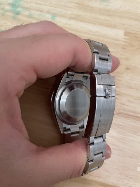 2022年6月有給知名錶板板主微補鋼輕拋光,所以我想應該是破保了。盒單、剩餘錶節齊全。