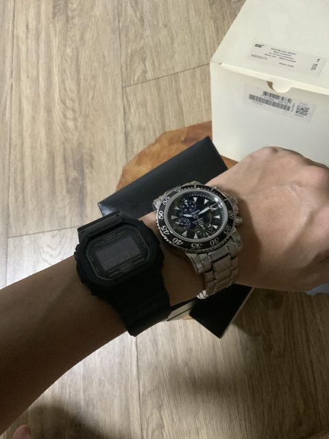 【其它備註】:一手自用,微量正常使用,最後一張為實戴大小比照圖,左邊為經典DW-5600(本人手骨偏細)。