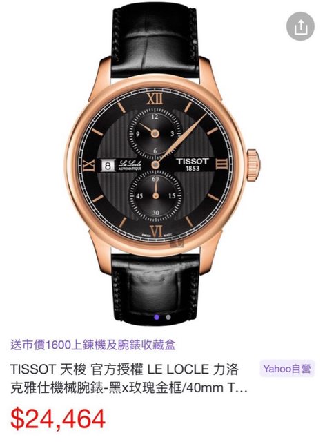 一、Tisstot-Le Locle 售價:12000元(誠可議) 型號:T006.428.36.058.02 保卡日期:2020年日本保卡(已過保) 錶徑:39mm 附件:盒單全,另外贈送原廠蝴蝶扣真皮皮帶一條 簡評:9成新以上,日本旅遊購買,罕見的三針一線款式,除原皮帶有正常使用痕跡,其餘 如新,送一條新皮帶供更換。 交易方式:站內信,店到店或台中面交謝謝。