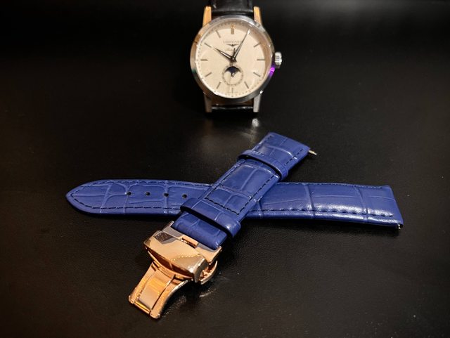標題[賣錶] 20mm 玫瑰金蝴蝶扣 藍色快拆錶帶