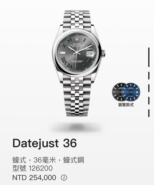 標題Rolex Datejust 36 126200 灰綠羅 全新未使用