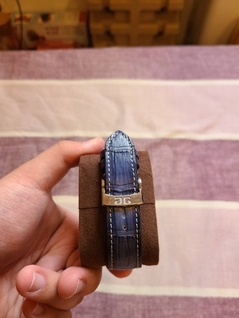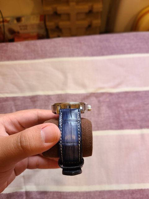 已於今年在沃坦換成漸層藍色的鱷魚皮帶