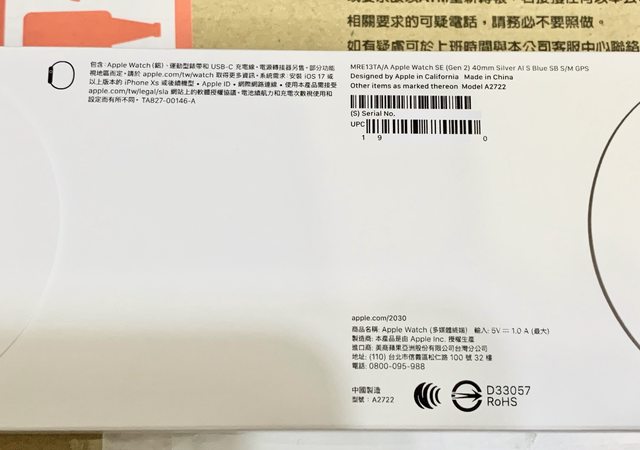 品牌名稱:Apple watch SE2 GPS 40mm 藍