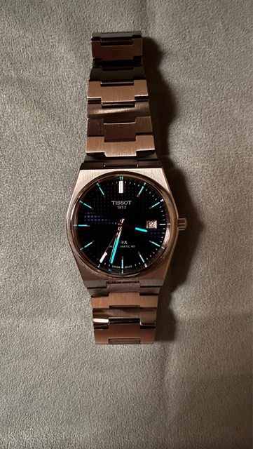 商品名稱:Tissot Prx 40mm 藍面(已售出) 交易縣市:嘉義市 數量:1隻 預售價格:7500 新舊狀況:2022/11/6,少次配戴,無碰撞 交易方式:面交或寄送 聯絡方式:站內信 其他說明 : 錶徑40mm,厚度10.9mm,防水100m ,盒裝、錶節完整 商品描述:整體約9成新,無碰撞,配戴後皆正常保養 官網參考: