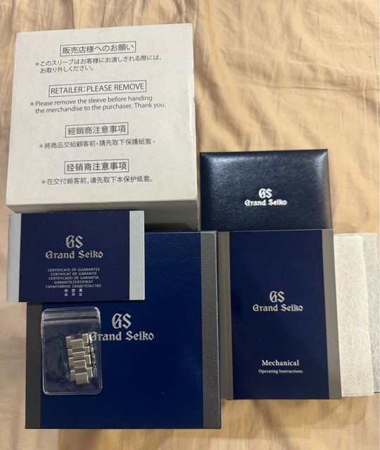 隨附物件:內外盒、保卡、說明書、出場檢測證明、吊牌、GS紙袋、剩餘錶節
