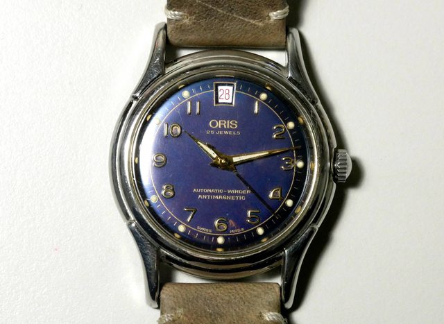 藍面復古文錶,有輕度痕跡,面盤6點鐘右方有小塊氧化痕跡(如圖)