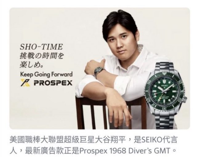 大谷翔平,代言此系列錶款: