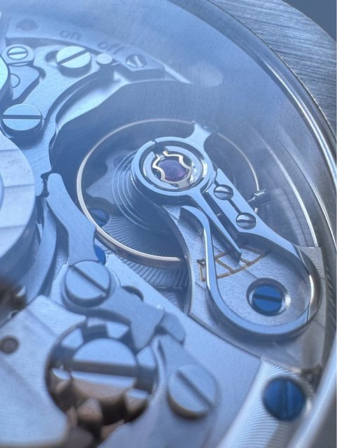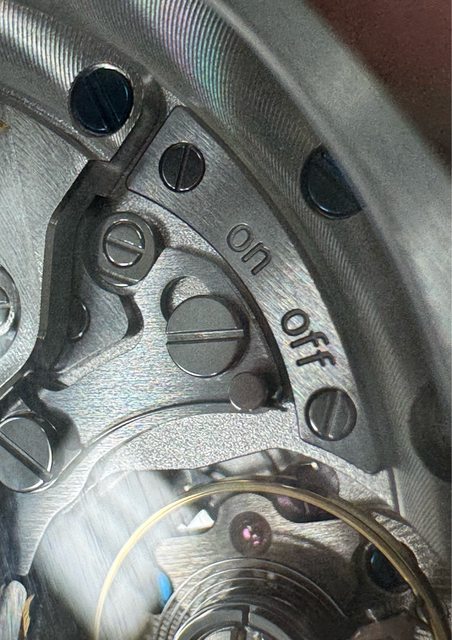 這支有個很特別的計時On/Off標示在機芯背面,果然德國人XD