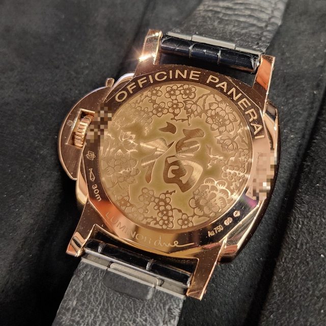 【售】:PANERAI 沛納海 PAM908 18k紅金材質 底蓋纂刻福字限量款 日期窗 專利錶冠護