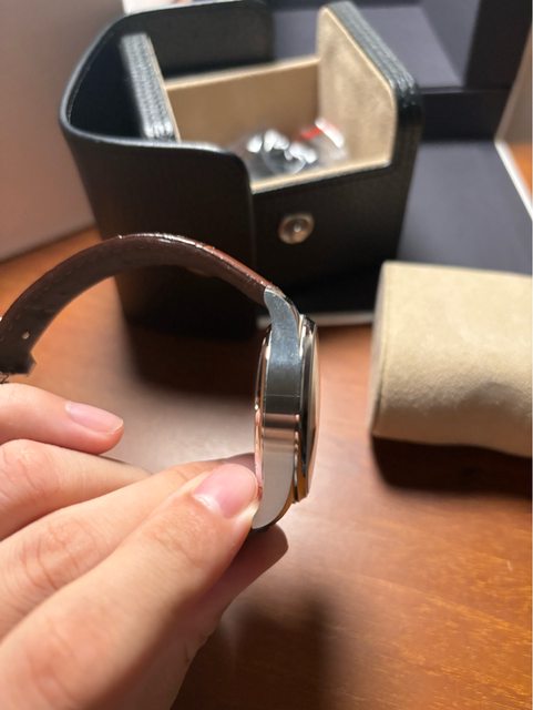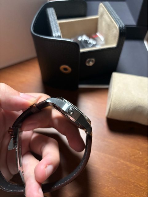 物件描述:非常簡約又好搭的正裝錶,目前換上副廠咖啡色錶帶,原黑色錶帶有使用痕
