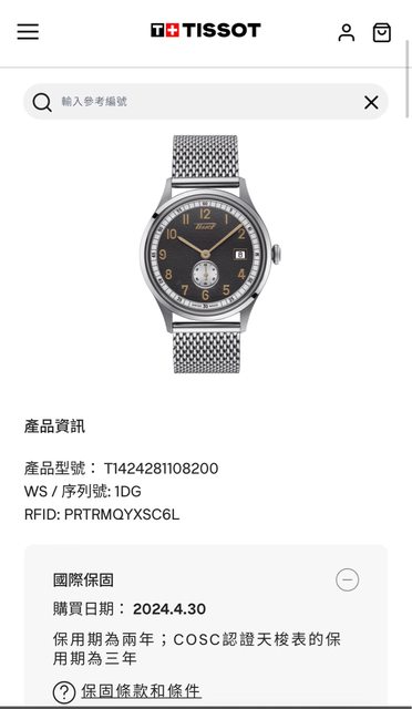 附件:原廠盒、台灣公司貨保單(2024/4購入3年保固)、原廠米蘭帶、原廠皮帶